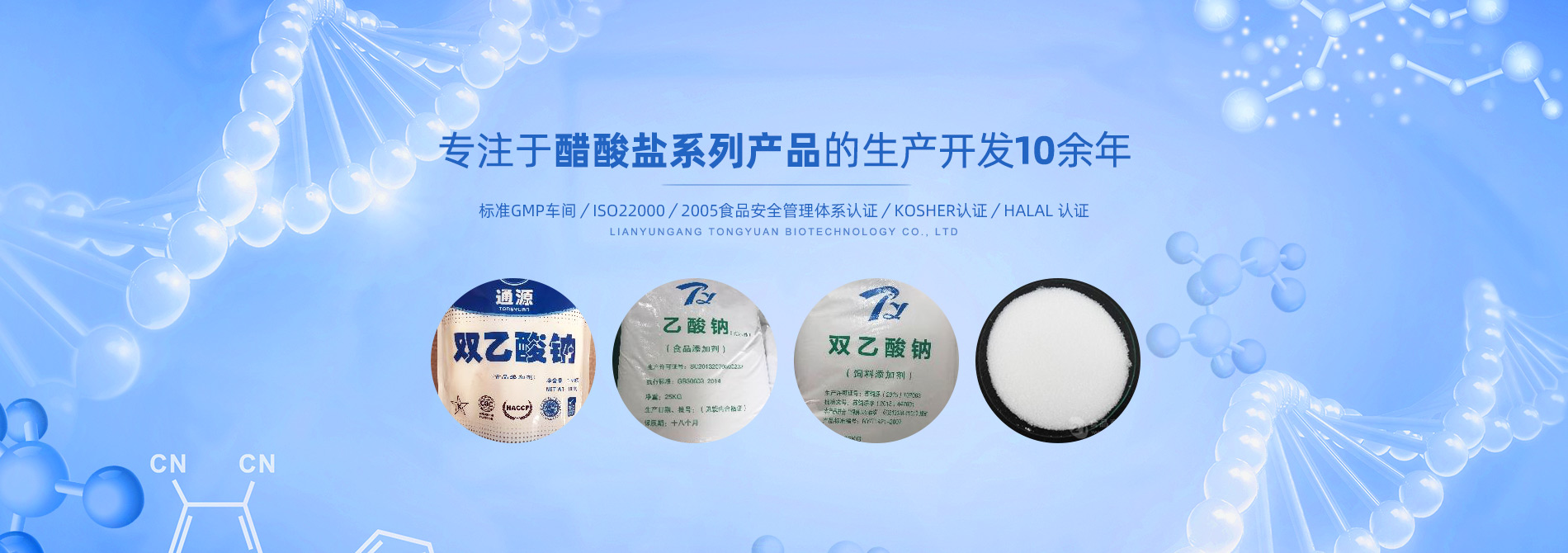 連云港市通源生物科技有限公司 是生產(chǎn)雙乙酸鈉、無水醋酸鈉、三水醋酸鈉、醋酸鉀、乙酸鈉、丙酸鈉、丙酸鈣和氯化鉀等系類醋酸鹽產(chǎn)品的專業(yè)制造商。公司專注于醋酸鹽系列產(chǎn)品的生產(chǎn)開發(fā)10余年,是國內(nèi)專業(yè)醋酸酸鹽產(chǎn)品生產(chǎn)基地。 目前,我們已和全球30多個國家和地區(qū)建立長期的業(yè)務合作關(guān)系,是中國較大的雙乙酸鈉生產(chǎn)商和出口商之一。作為中國食品添加劑和配料協(xié)會理事單位,通源公司已建成標準GMP車間5000余平方米,通過了ISO22000:2005食品安全管理體系認證、KOSHER認證、HALAL 認證等,這些都是我們提供高質(zhì)量產(chǎn)品和優(yōu)良服務的前提和確保。 生產(chǎn)出色產(chǎn)品,提供優(yōu)良服務,滿足顧客需要,是我們努力的目標。愿和我們的朋友們攜手,共...